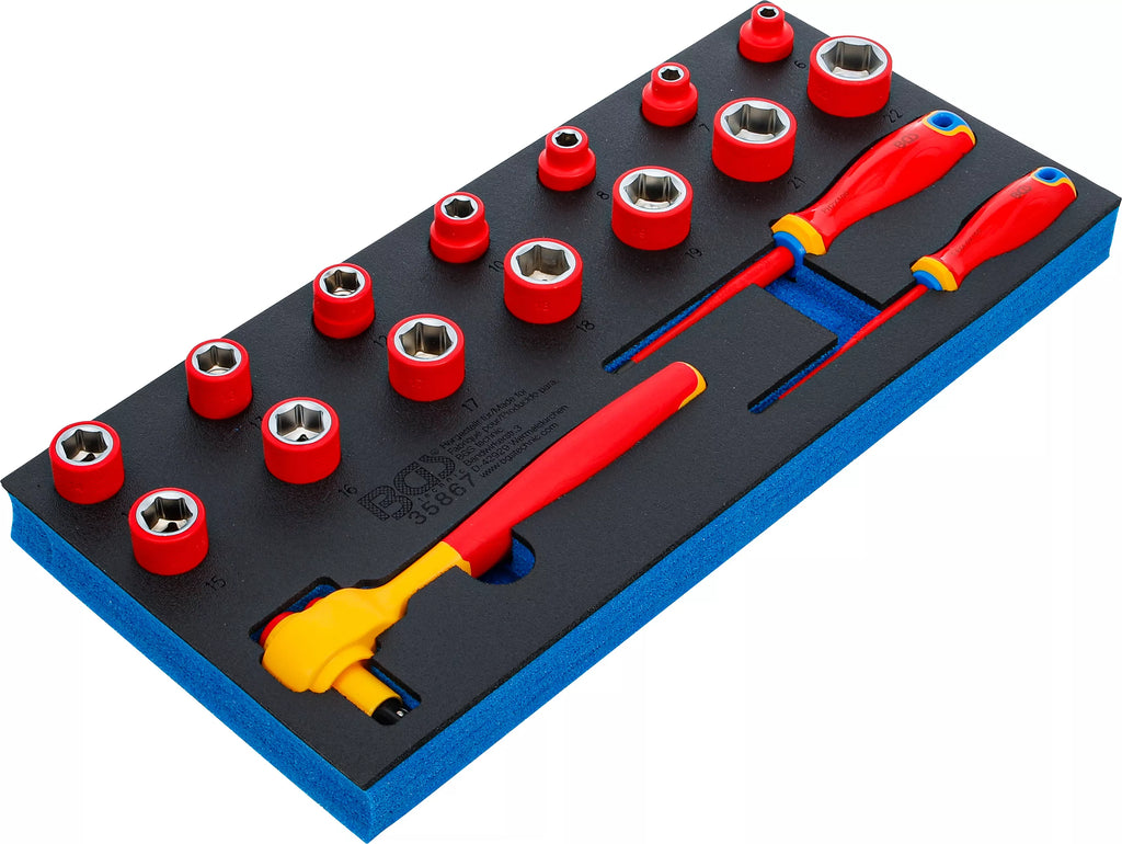 Værkstedsvognsindsats 1/3: VDE topnøgle- og skruetrækkersæt | 10 mm (3/8") | 17 dele