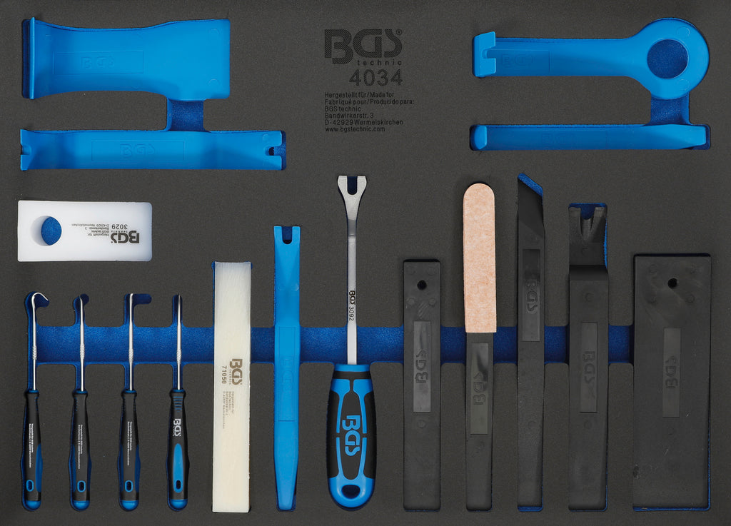 Værkstedsvognsindsats 3/3: Afmonteringsværktøj, monteringskiler og krogsæt | 17 dele
