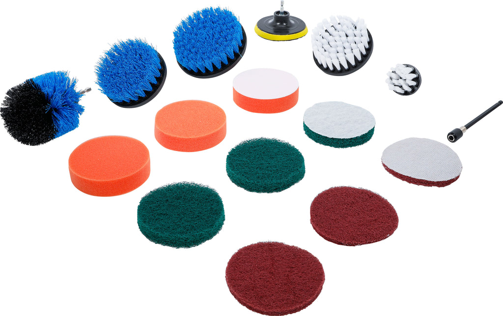 Slip- /poleringsskivor och borsttillbehör-sats | För borrmaskiner | 16 delar