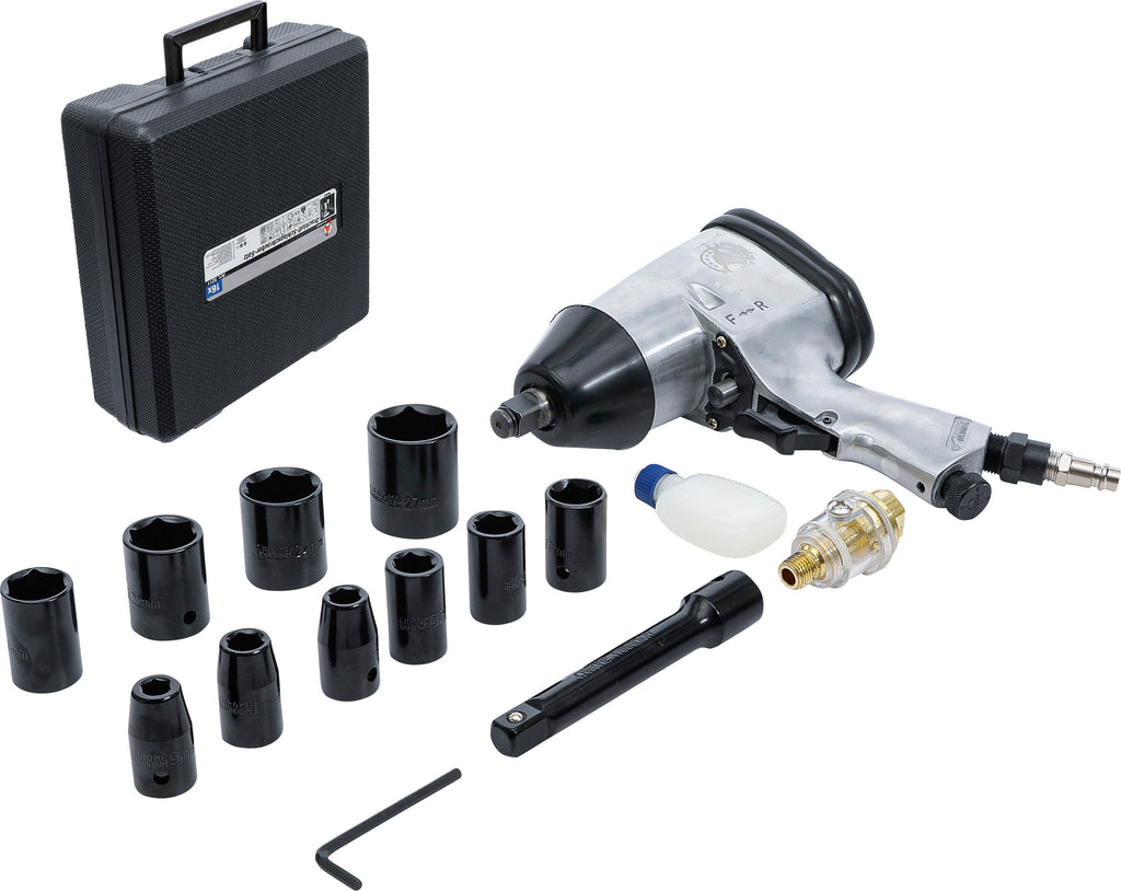 Tryckluft-mutterdragare med verktygssats | 12,5 mm (1/2") | 312 Nm | 16 delar
