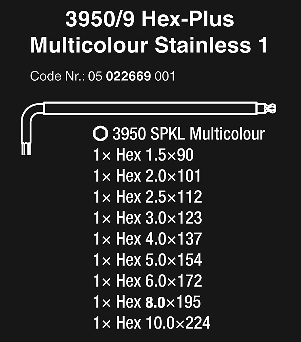 WERA 967 SPKL/9 TORX BO Multicolour SB L-key set for tamper-proof, BlackLaser 967 SPKL TORX® BO Mult